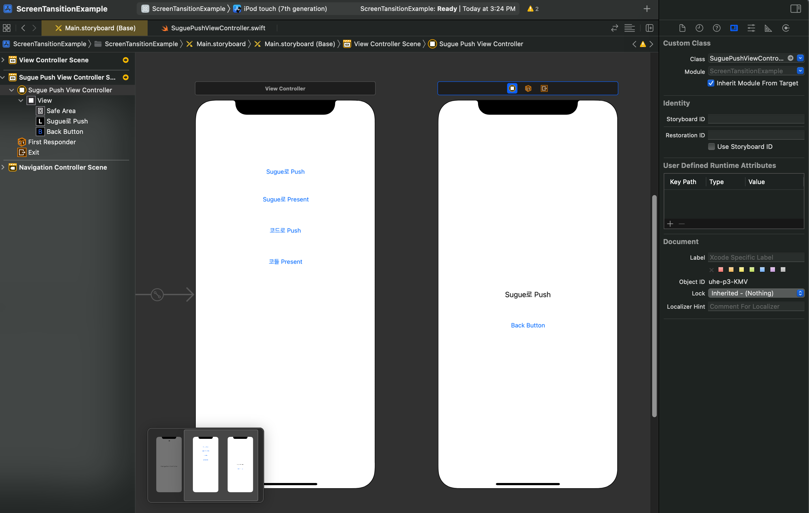 6). SuguePush 화면에서 BackButton 버튼을 누르면 뒤로가게 하기 (상단 Back 눌러도 이동함)