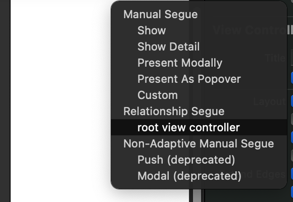 4. 우클릭 드래그Navigation Controller Scene → View Controller Scene 으로