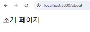 브라우저에서 http://localhost:3000/과 http://localhost:3000/about에 접속. 각 경로에 대한 응답을 확인
