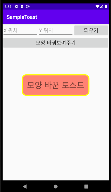 Toast toastView = Toast.makeText(this, "위치가 바뀐 토스트 메시지입니다.", Toast.LENGTH_LONG);