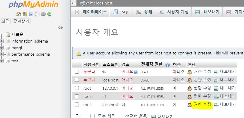 MySQL의 사용자 암호를 변경하고