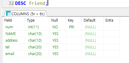 DESC 구문은 테이블의 구조를 살펴볼때 씀