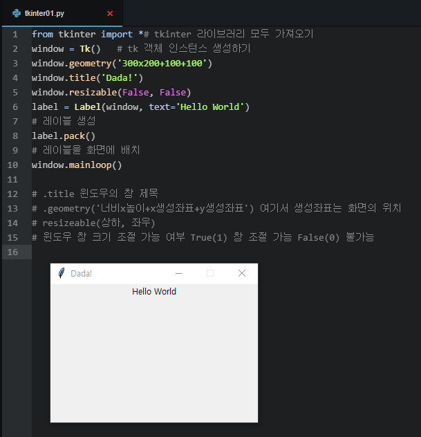 from tkinter import * # tkinter 라이브러리 모두 가져오기