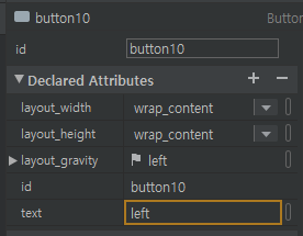 아래로 내려가면 layout_gravity 있음 눌러셔 열고 원하는 방향에 체크하면 끝