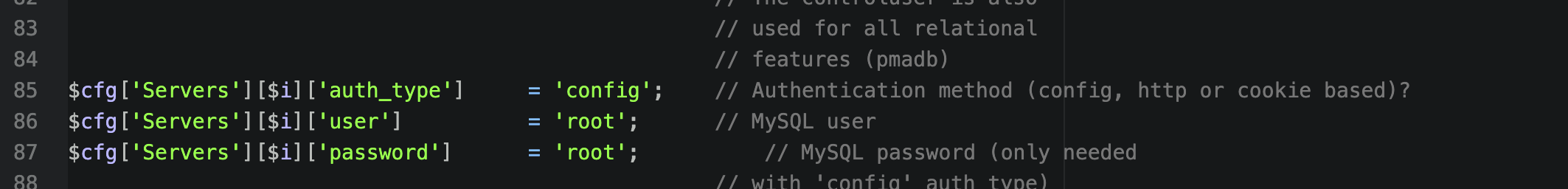 이렇게 비밀번호를 변경하고 나면 phpMySql의 admin 환경설정을 변경해야한다