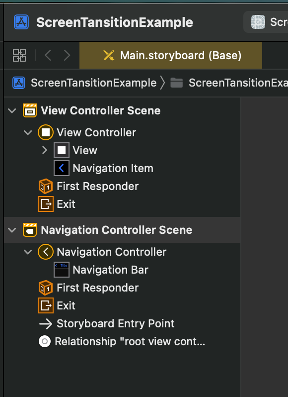 4. 우클릭 드래그Navigation Controller Scene → View Controller Scene 으로