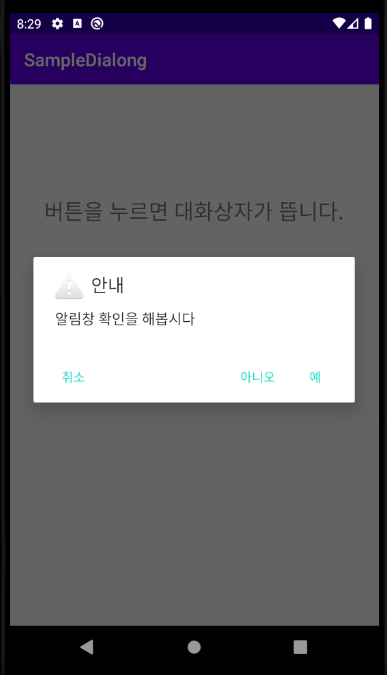 안드로이드 알림 대화상자 보여주기 / Android Studio / 안드로이드 앱만들기 공부 17