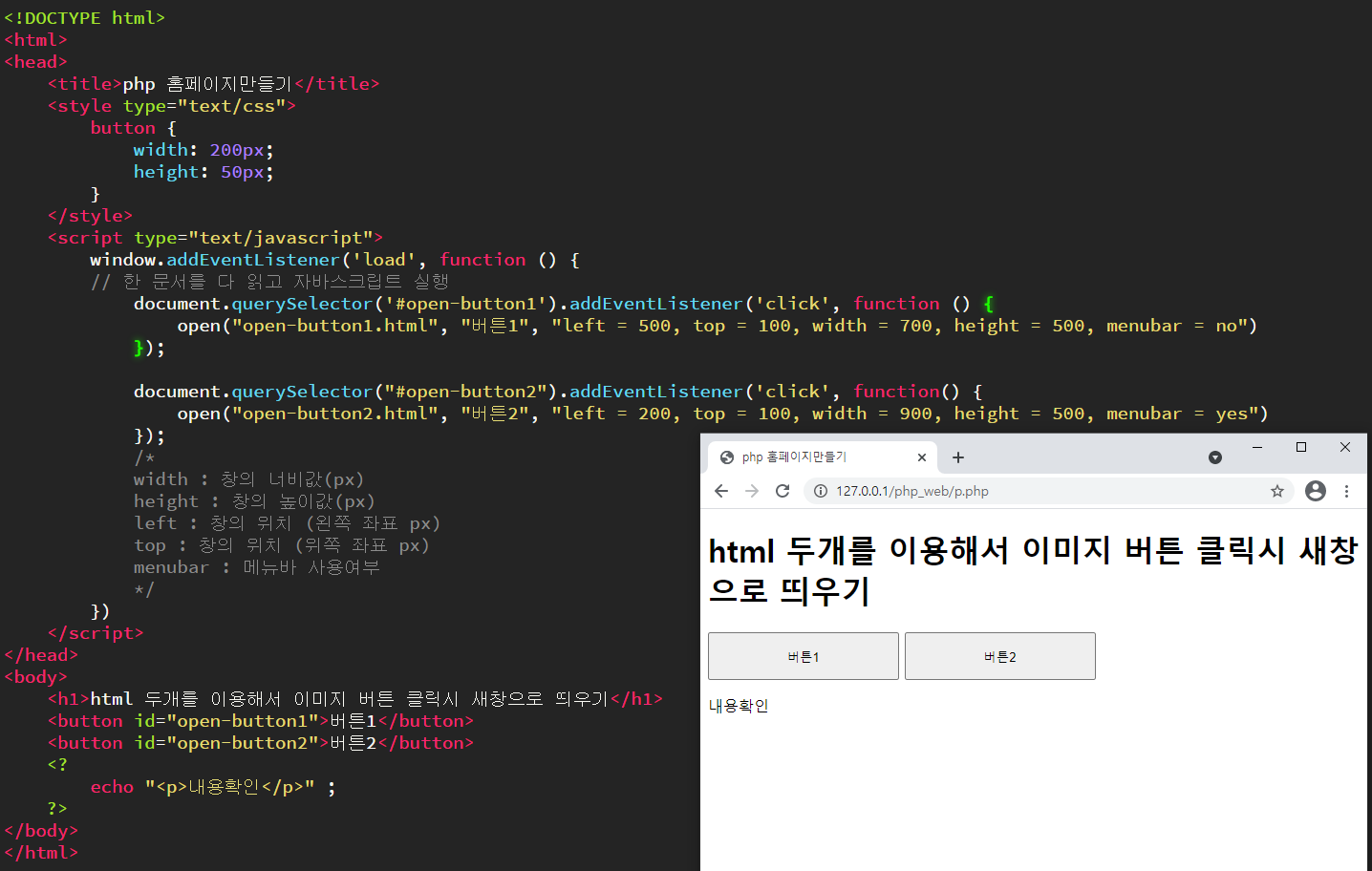 테스트 문서를 작성했다 저번에 javascript 확인한거 긁고 php 문법으로 <? ?>안에 p태그를 써서 내용확인라고 작성